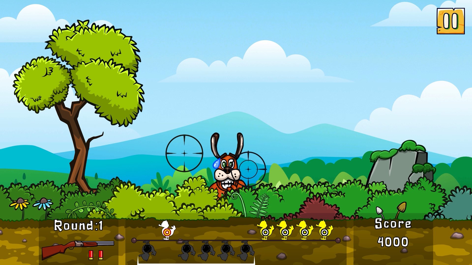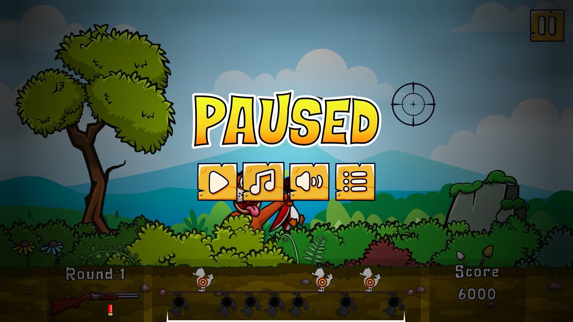 To Pass to the next round, you must shoot at least 6 ducks. Move the scope and shot the ducks before they fly away from the screen!