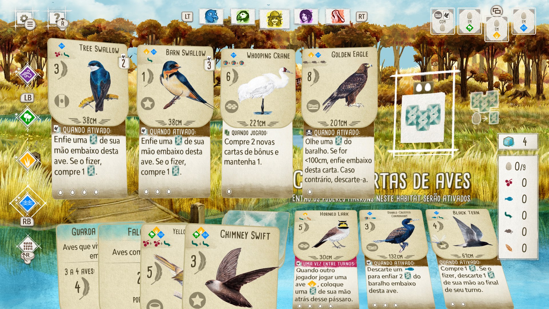Wingspan é um jogo de cartas e estratégia relaxante e vencedor de prêmios sobre aves, para 1–5 jogadores. Cada ave jogada estende uma cadeia de combinações poderosas em um dos seus três habitats. Seu objetivo é descobrir e atrair as melhores aves para o seu aviário de preservação.