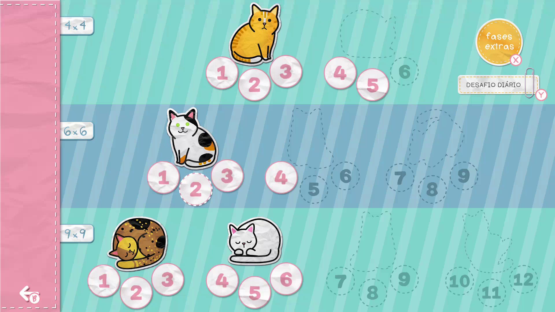 - Puzzles com grades em 4x4, 6x6 e 9x9