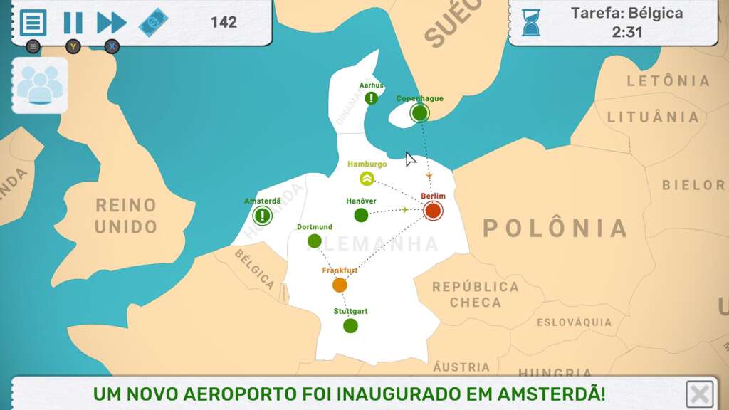 A base do gameplay é simples: conectar cidades, expandir sua rede e evitar gargalos. Mas a execução transforma isso em algo muito mais intenso.