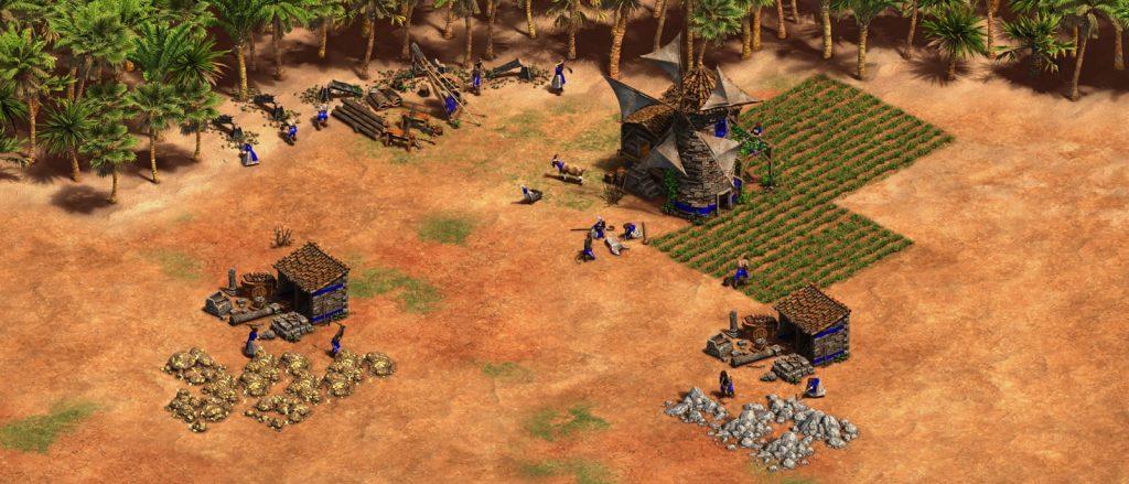 - Na busca por recursos, porém sem a parte exploratória, temos nossos “peões” carregando coisas diretamente da fonte ala Age of Empires.