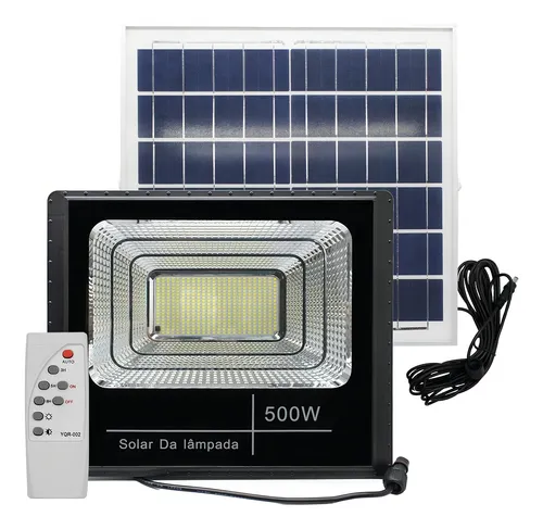 Refletor Solar Led Holofote 500w Carcaça Preto Luz Branco-frio